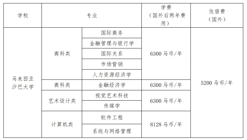 备注:马来西亚沙巴大学本科学制年限根据专业的不同,分为3.5年制和4年制。
