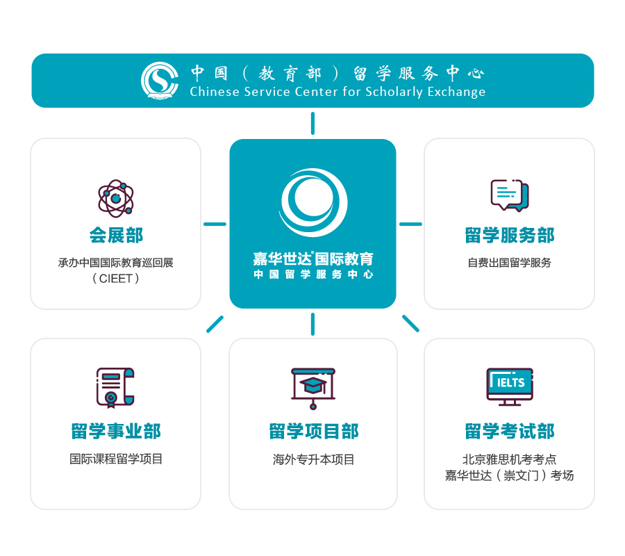 嘉华世达设有留学服务部、留学事业部、留学考试部、综合拓展部、会展部、市场部、财务部及人力资源与行政办公室,开展美国、加拿大、英国、澳洲、韩国、日本、新加坡、法国、马来西亚等二十几个国家留学业务。二十余年来嘉华世达向海外输送留学生近15万人,本着“为中国学生提供海外优质教育服务”的宗旨,积极、稳妥地开拓新项目,努力打造一条中国学生赴海外深造的安全通道。缔造未来,值得信赖!